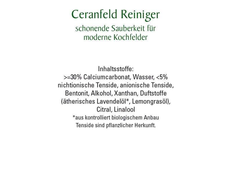 Anwendung: Vor Gebrauch schütteln! Ceranfeld-Reiniger mit feuchtem Schwamm/Tuch verreiben, gründlich feucht abwischen, trocken polieren.
