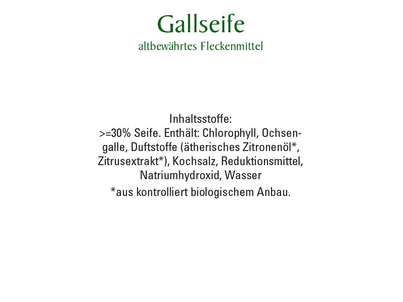 Traumhaftes, hochwirksames und ergiebiges Fleckenmittel. Entfernt umweltfreundlich Obst-, Blut-, Fett-, Tinten und Eiweißflecken auf farbechten Geweben. Grundlage sind Kokosfett mit herausragender Reinigungswirkung und Palmöl, das mit sehr guten Fettlöse-Eigenschaften begeistert. Die Ochsengalle enthält natürliche Enzyme, die Fett und Eiweiß aus dem Gewebe lösen können.