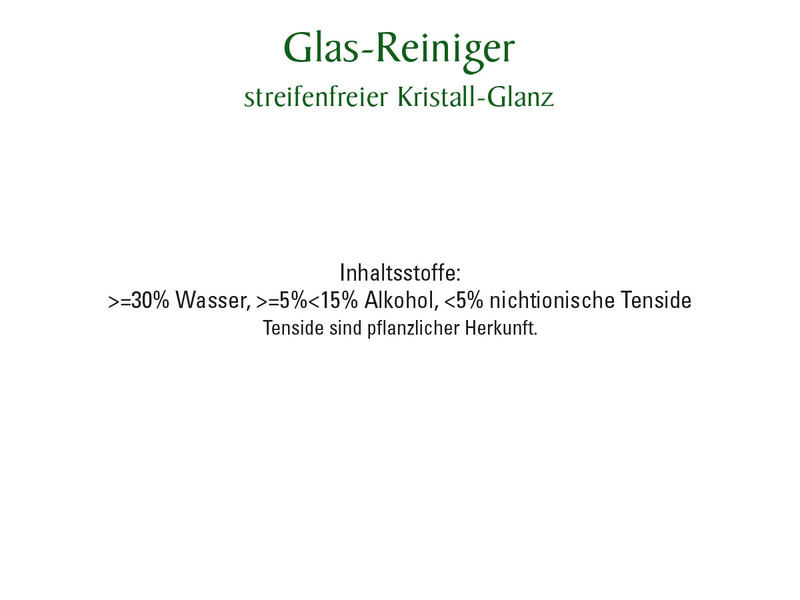 • zur streifenfreien Reinigung mit Kristall-Glanz für Fenster, Spiegel, Vitrinen, Glastische und Autoscheiben