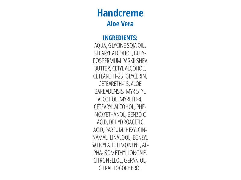 Verwöhnen Sie Ihre Hände und Nägel besonders sanft mit der schnell einziehenden Aloe Vera Handcreme und fühlen Sie den Sofort-Pflege-Effekt gerade bei trockenen und empfindlichen Händen.